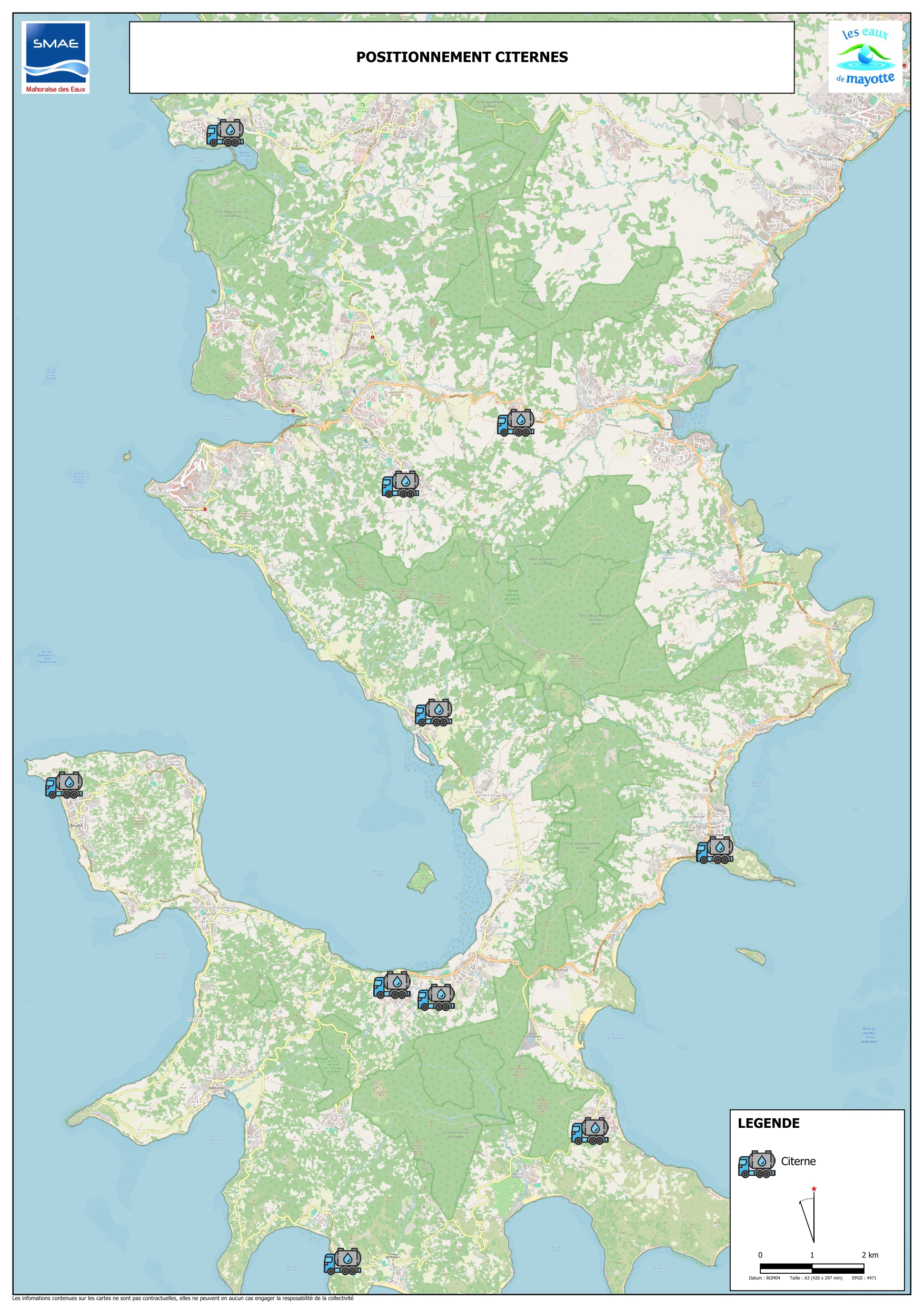 Positionnement des rampes d'eau et bornes fontaines durant la période des travaux de l'usine d'Ourovéni