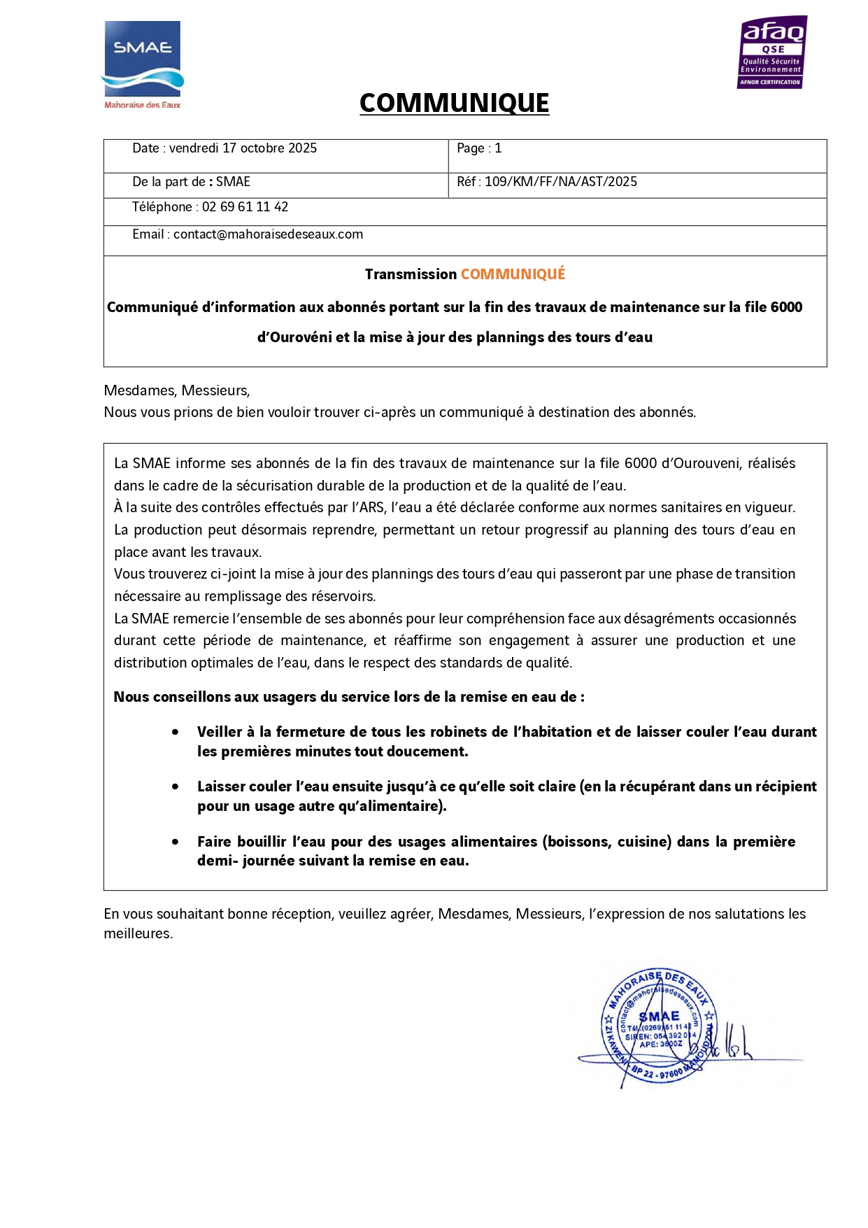 Bienvenue sur le site de SMAE -Mahoraise des Eaux.