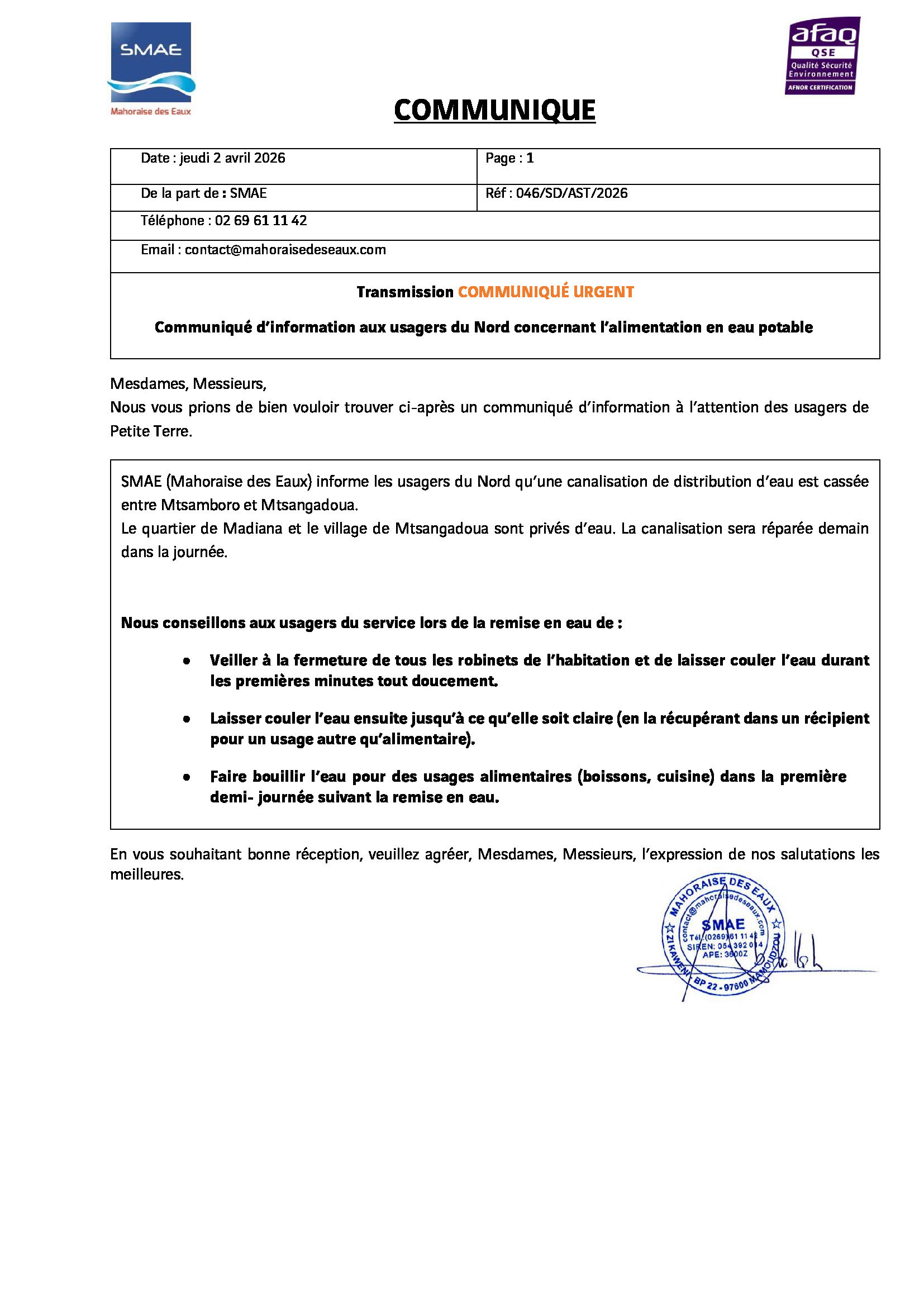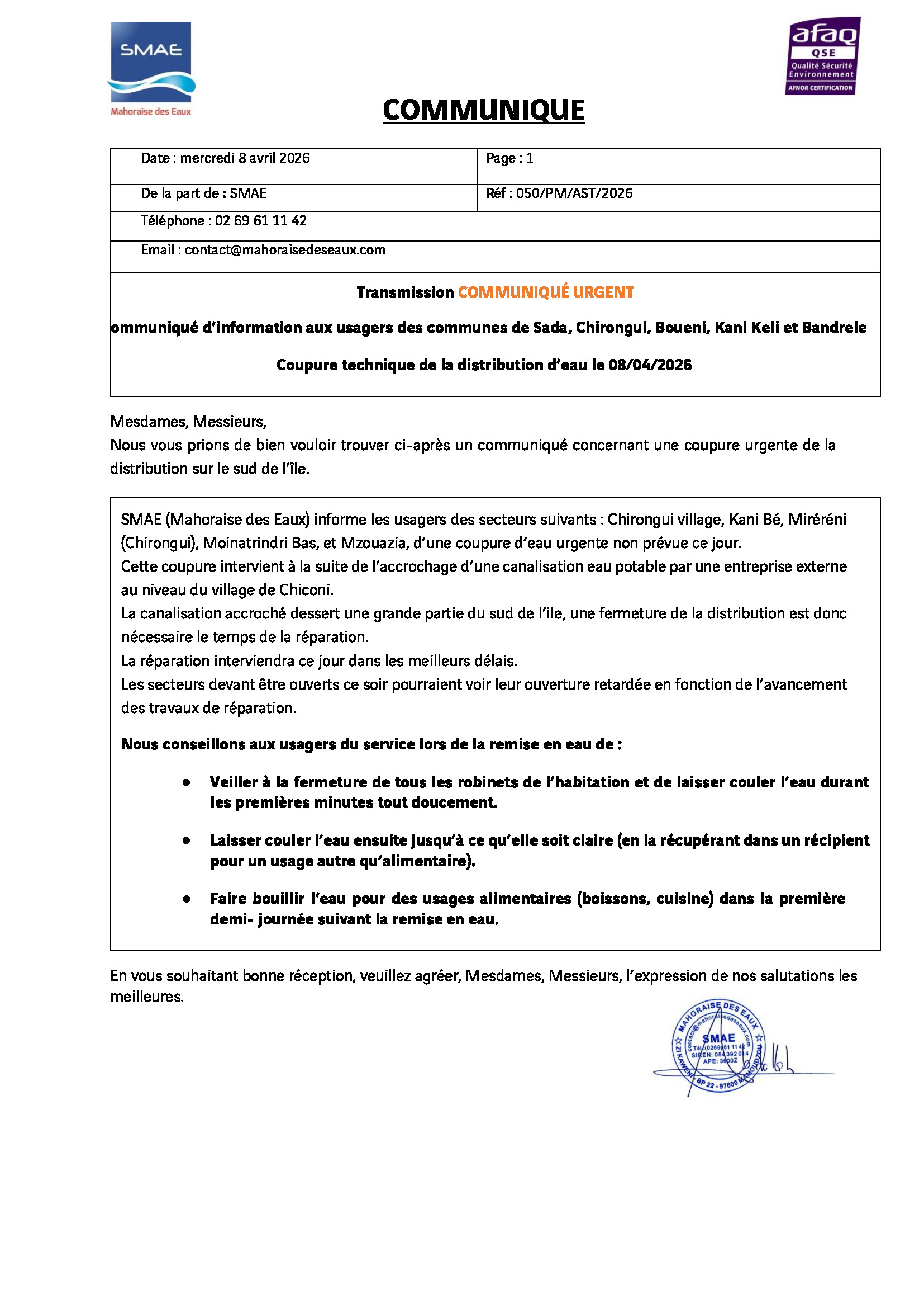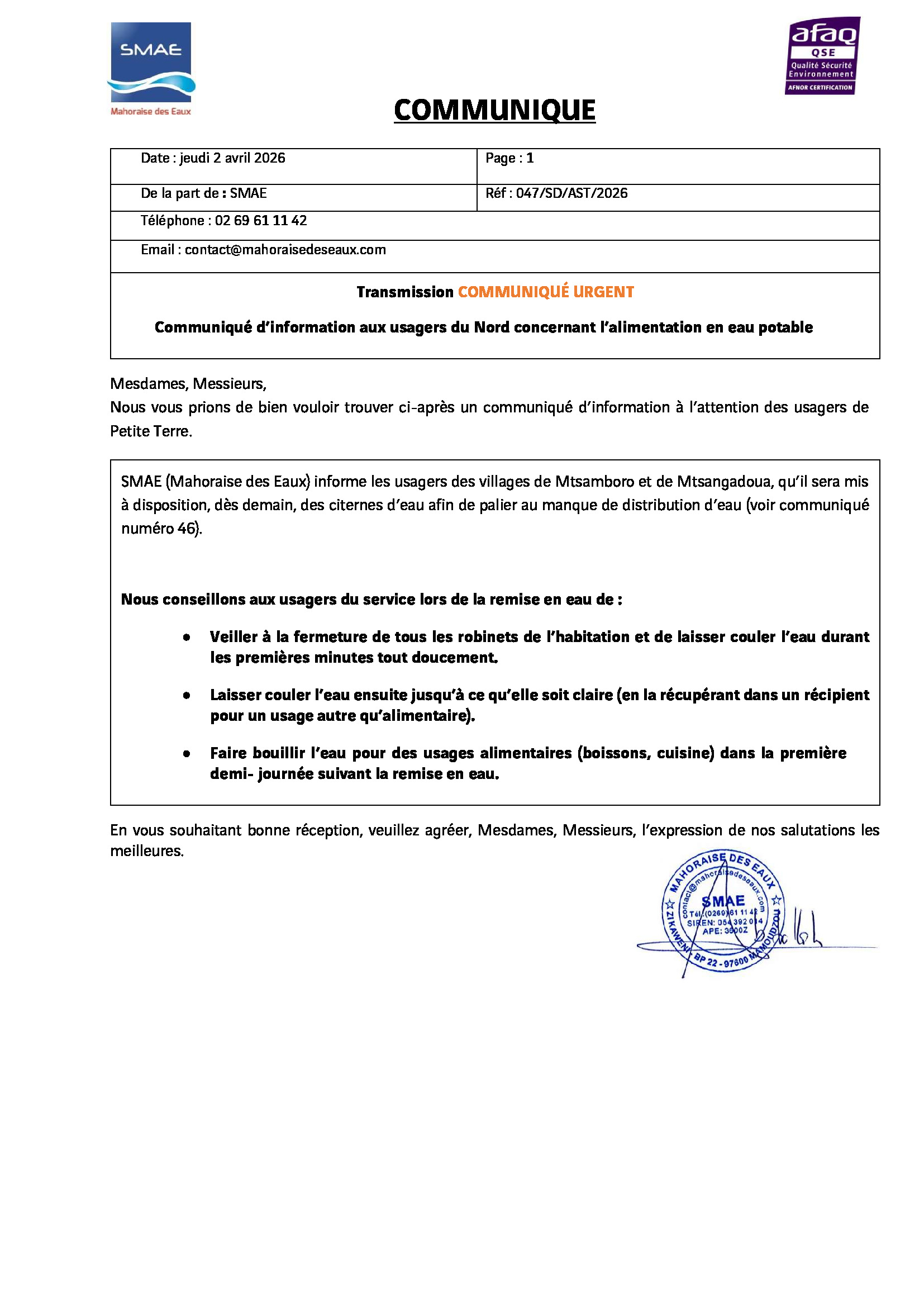 Bienvenue sur le site de SMAE -Mahoraise des Eaux.