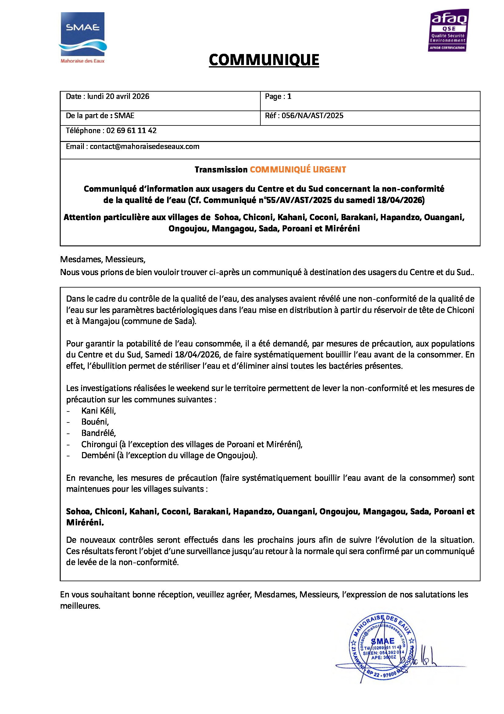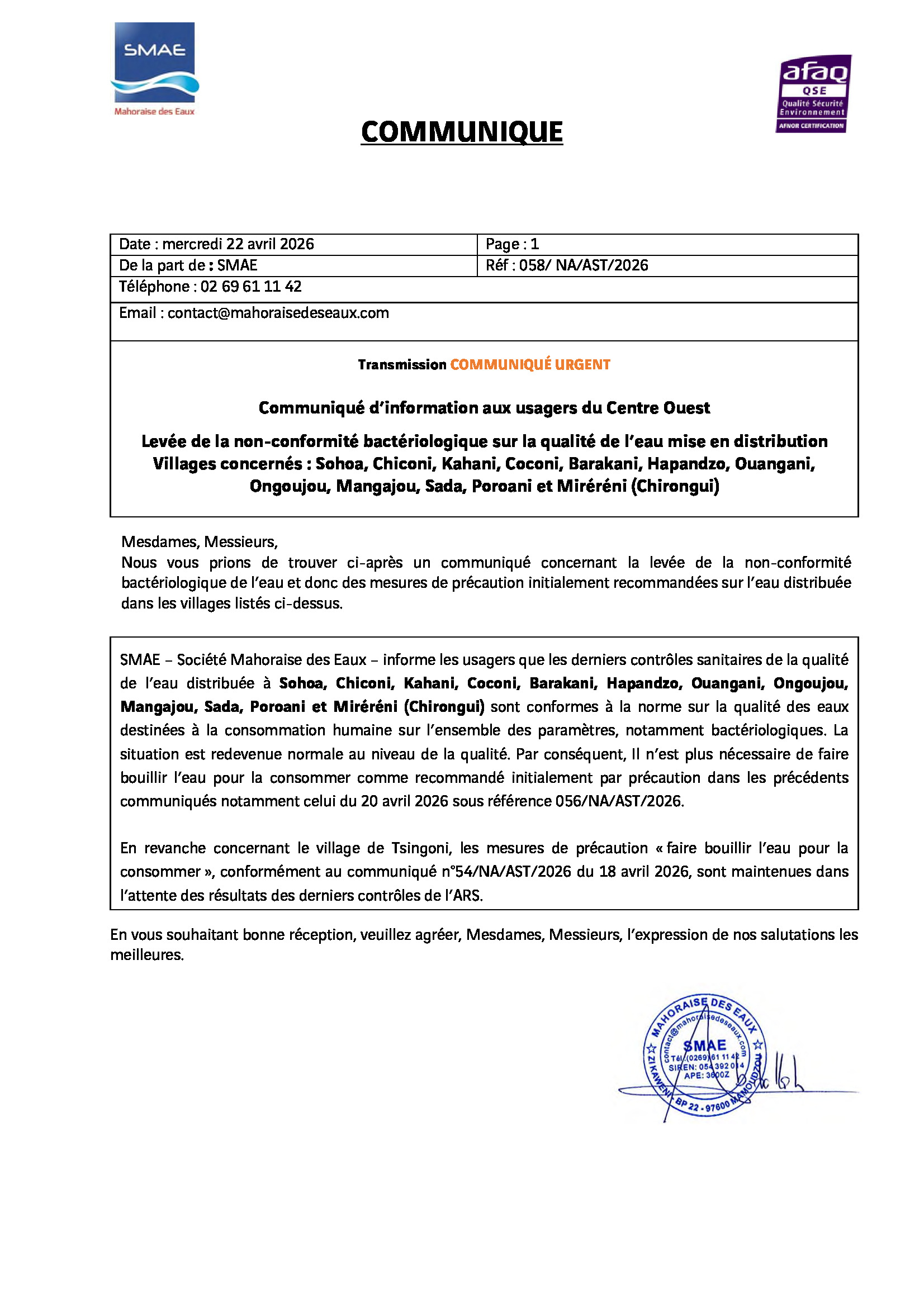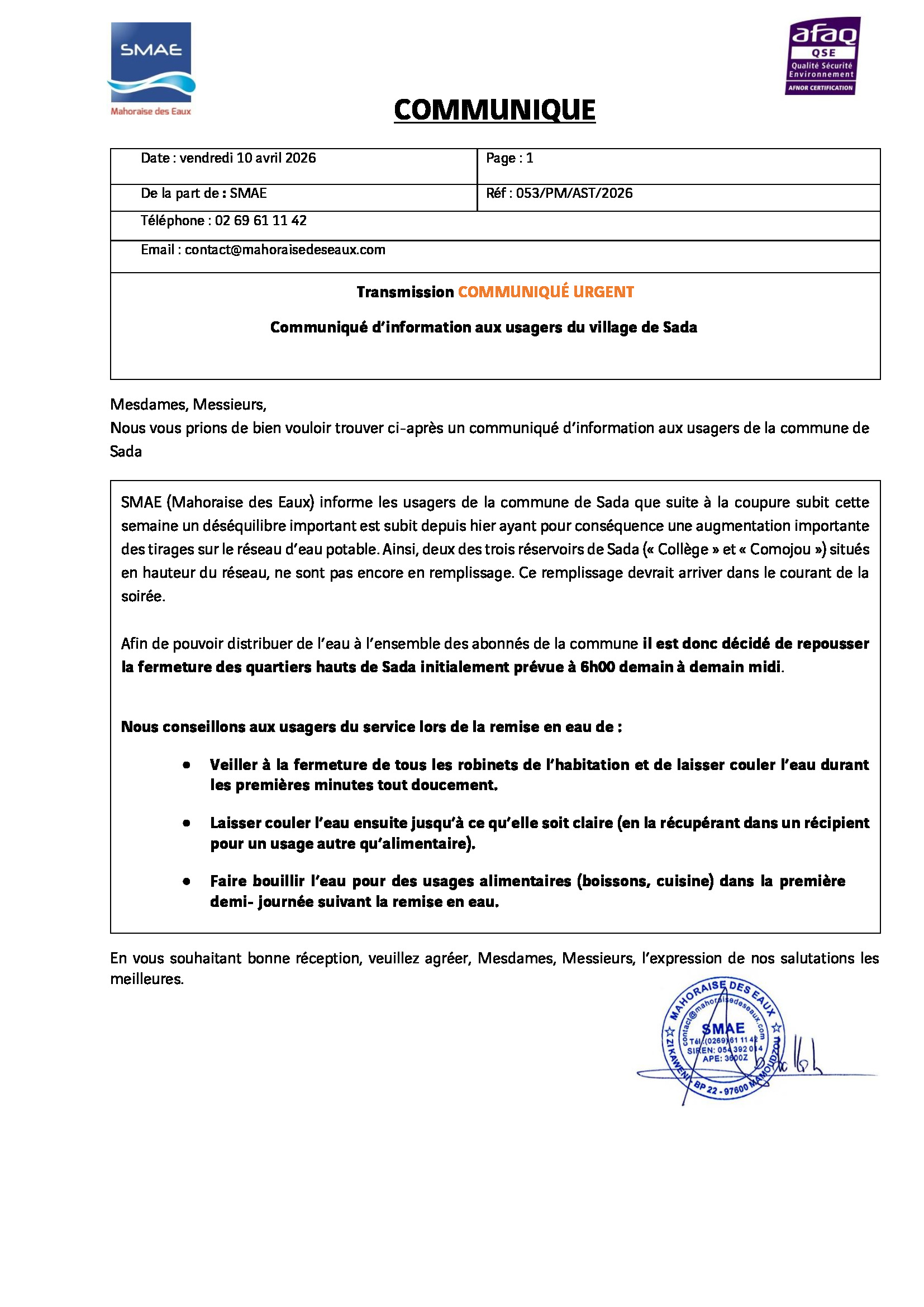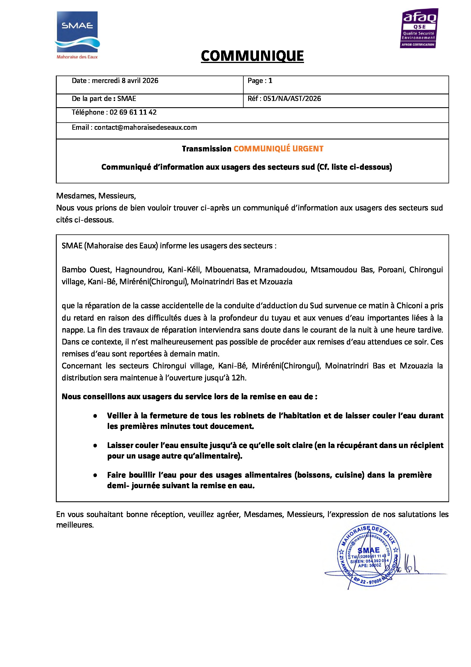 Bienvenue sur le site de SMAE -Mahoraise des Eaux.